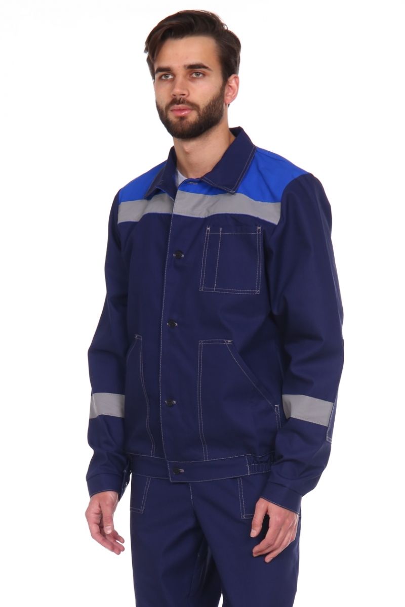 ➠ Куртка укороченная, пояс притачной. Центральная бортовая застежка на петли и пуговицы. Воротник отложной. Один нагрудный накладной карман с отделением для ручки. Два нижних накладных кармана с наклонным входом.