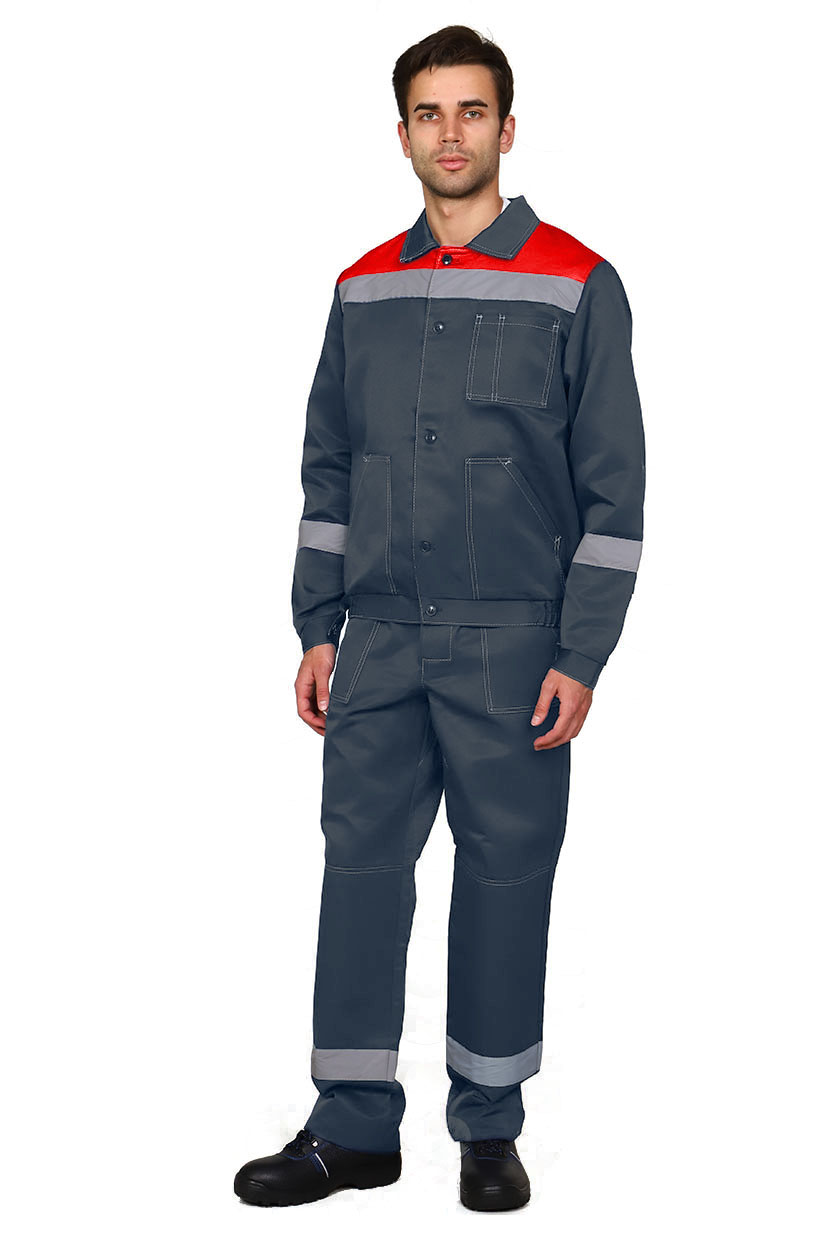 ➠ Куртка серая с красной кокеткой укороченная, пояс притачной. Центральная застежка на петли и пуговицы. Воротник отложной. Накладной карман на груди с отделением для ручки. Нижние накладные карманы с наклонным входом.