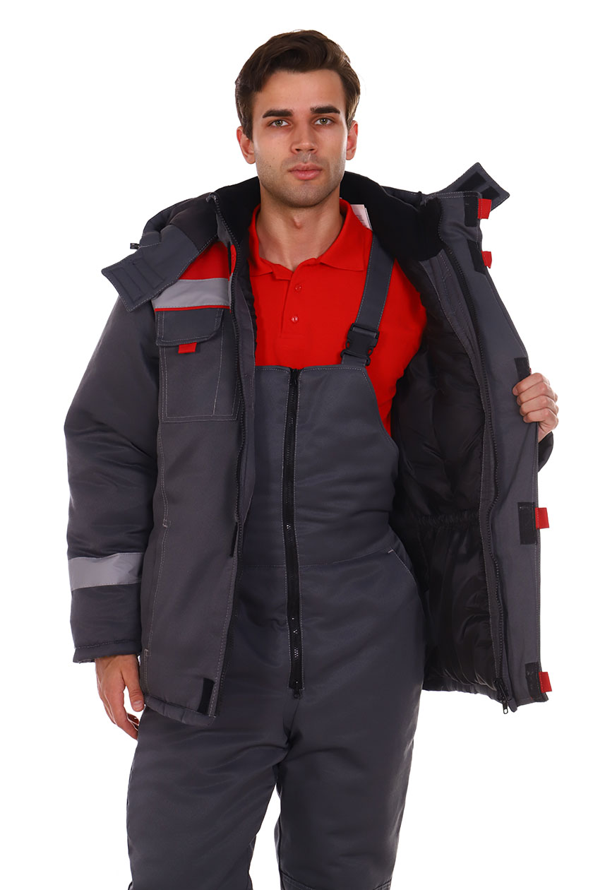 Видео слайд-шоу зимнего рабочего костюма «КОС 549.1» из куртки и полукомбинезона.