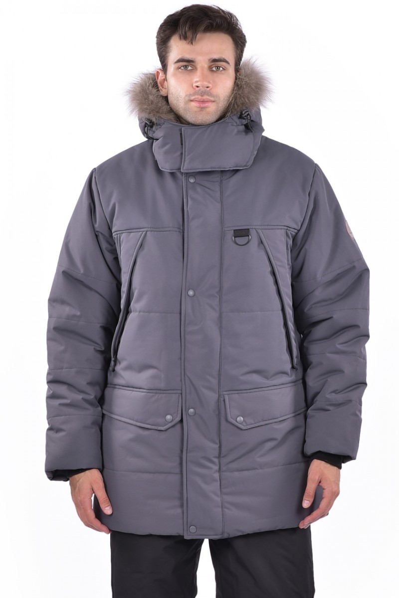 ➠ Куртка: силуэт прямой, удлинённый низ по спинке, притачная утеплённая подкладка, съемный капюшон со съемной опушкой из натурального меха, воротник стойка.